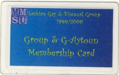 Manchester Metropolitan University LGB Society 1999/2000. Reverse of card. I wasn't sure whether to add this with it not being specifically music related, although it was a sort of social/club night. MMU LGB Society used to have the weekly meet at Aytoun Student's Union - G-Aytoun! I couldn't tell you when the 'T' was added to LGB.