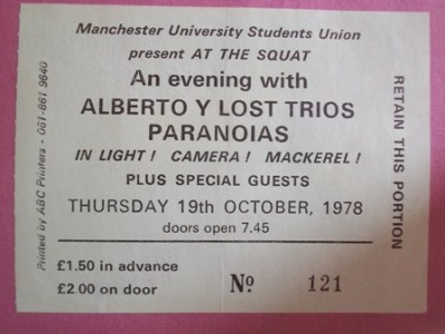 This I dug out from my wife's ticket collection. I didn't get to see the Albertos until they played the Lamplight a few years later