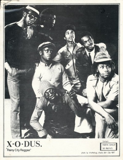 Promo for X-O-DUS who I think were the only reggae band on the Factory label.Still got the 12" "English Black Boys" b/w "see Them a Come" (Fac 11) produced by Dennis "Blackbeard" Bovell (The Slits,L.K.J. etc).Top a top choon.Rainy City Reggae indeed...