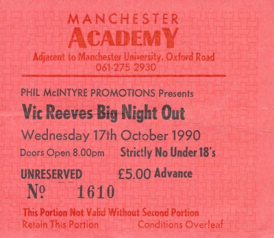 This was the last gig I went to before departing Old Blighty for foreign shores and although it's not strictly musical, Vic did have a song in the charts with The Wonderstuff a bit later on;(loved his "I Remember Punk Rock" tribute song).I think The Academy was newly opened and it was a good, and indeed a big night out....