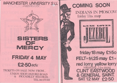 Other side of the same flyer.It's nice to think that some people were eco-conscientious even back then.Again mostly not my cup of tea really.(If I keep using that expression I'll have to shorten it to C.o.T or sumthin'....see if I can avoid it...Oh, and the next thing to learn today is how to work the spellcheck instead of keep looking things up in the dictionary.I'm on a steep learning curve today as they say in office-speak. world...right got that out of my system.where was I....)Yeah Clint and General (to his mates..) were good fun.Visions of "You kiss Katey K.Y. you minus plus..." on the dancefloor of The Cyprus.Ah yes it's all coming back to me now....