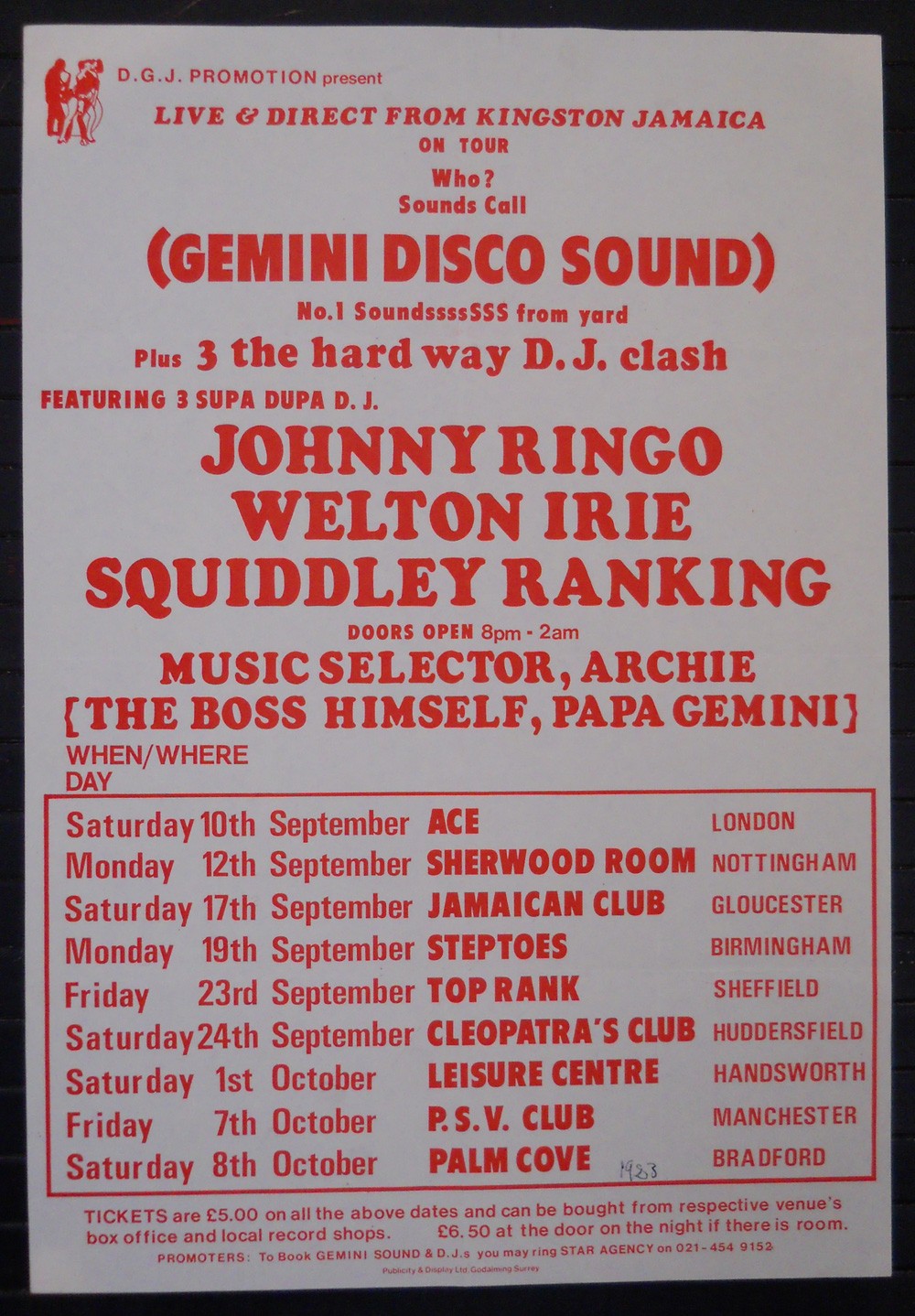 Another stellar line-up, direct from J.A. and a fine looking flyer to boot! Mike Shaft used to play a lot of this stuff on his Saturday evening show, with the odd guest on too. Those DJs really knew how to give themselves good names!