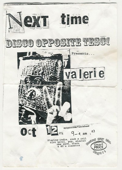 Some of my favourite ever gay nights in Manchester - Disco Opposite Tesco!. Small, sometimes absolutely dead, sometimes hammered. Trashy, queer nights in Rusholme, downstairs in Saki Bar. Power Ballads at 3am when there were about 2 people left. Ste McCabe got on an amp and showed his bum to the audience once, for no reason. Always a great live queer act from across the UK every month. This one saw the return of Valerie, local queer heroes who hadn't played for years. They complained (warmingly) that all of their friends were at a house party and should have been there instead.