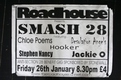 Anti-Section 28 benefit gig organised by Stephen Nancy and Desolation Angels - more information in other artifacts relating to the same night, search on "Stephen Nancy" or "Desolation Angels" to find out more!