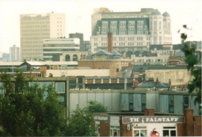 From the same pigeon balcony vantage point as last pic but looking more to the right across the city, towards Deansgate and the Kendals building. Granada Studios would be just to the left.