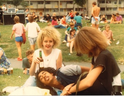 Hairstyles of the 80s. I think the lad to the right may well be the Auss guy on the Jillys Overflow night on the upload of the month feature as I know he used to play out. Other goodly folk from the hamlet of Hulme ; Dub Sex people and a young lass enjoying a beer ;-) ...