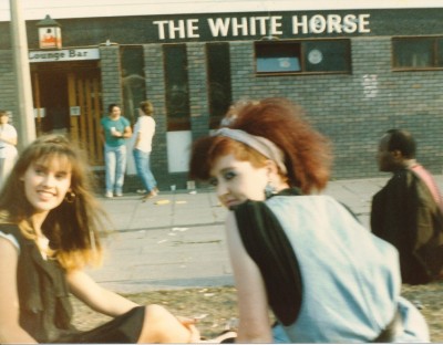 A couple of lively lasses enjoying the sun and a warm beer on carnival day...."The White Horse" often went from that to "The White Hor" depending on how witty/ twitty the local vandals were on the day, (before tagging and graff became so prevalent). Good pub that.....