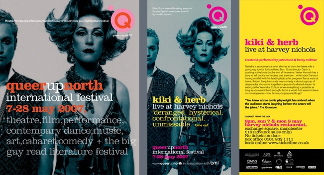 Kiki and Herb (Justin Bond and Kenny Mellman) are an American drag cabaret duo. Bond portrays Kiki DuRane, an aging, alcoholic, female lounge singer. Mellman portrays her gay, male piano accompanist, known only as "Herb."