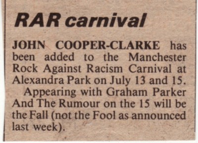 pretty sure I was at this and remember Graham Parker playing but not the Fall!