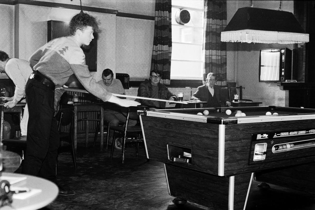 Mick Hucknall shoots some pool in The Grants. Photo by Richard Watt.