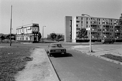 The Grand Junction, a Victorian pub left alone surrounded by concrete. Not unlike the 'flat iron' building in NYC. Good place for Sunday lunch Guinness and what a location for an urban movie ! The waiting car, a mini cab, and the sign on the lamp post says Ormsgill Close, no houses, just waste land, how to be back there one day, has the pub gone or not? That is the question ! - Pic Richard Watt