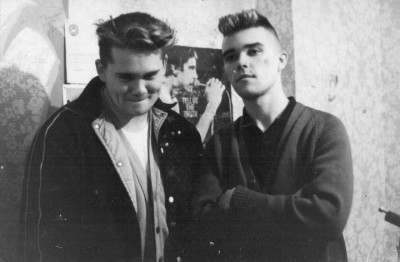 Ian Brown's flat, top floor of Charles Barry. Posing with myself. Believe the Stone Roses had just started under that name around that time.