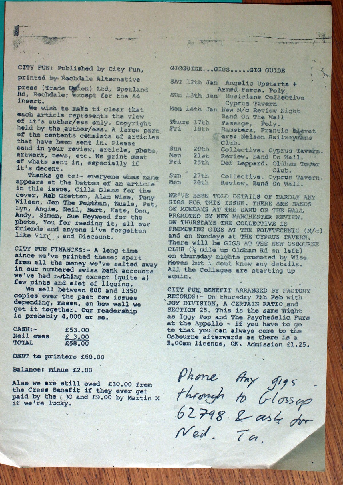 A Certain Ratio, Joy Division, Jon Savage, Jeff Noon Fanzine R.F.P. 4th January 1980