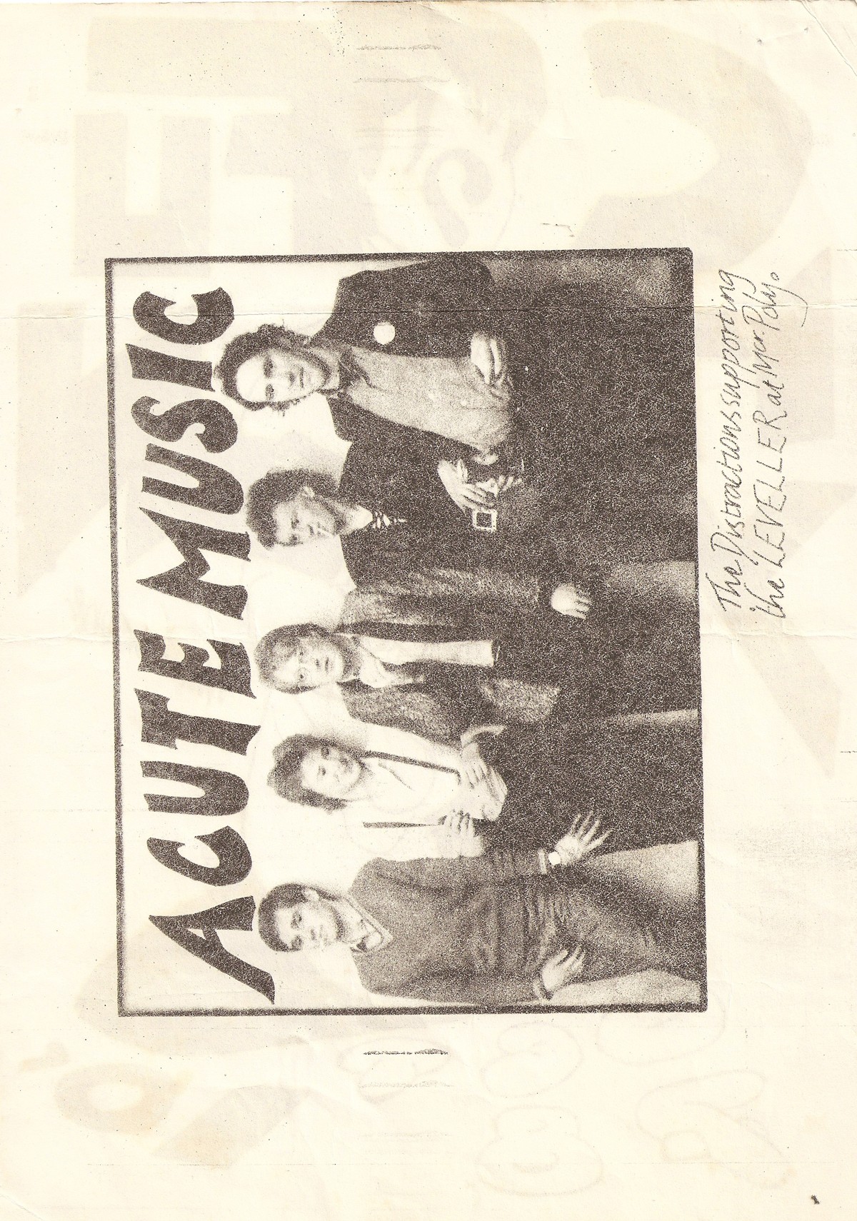 Inside front cover. Photograph of The Distractions. Text: The Distractions supporting The LEVELLER at Mcr Poly.