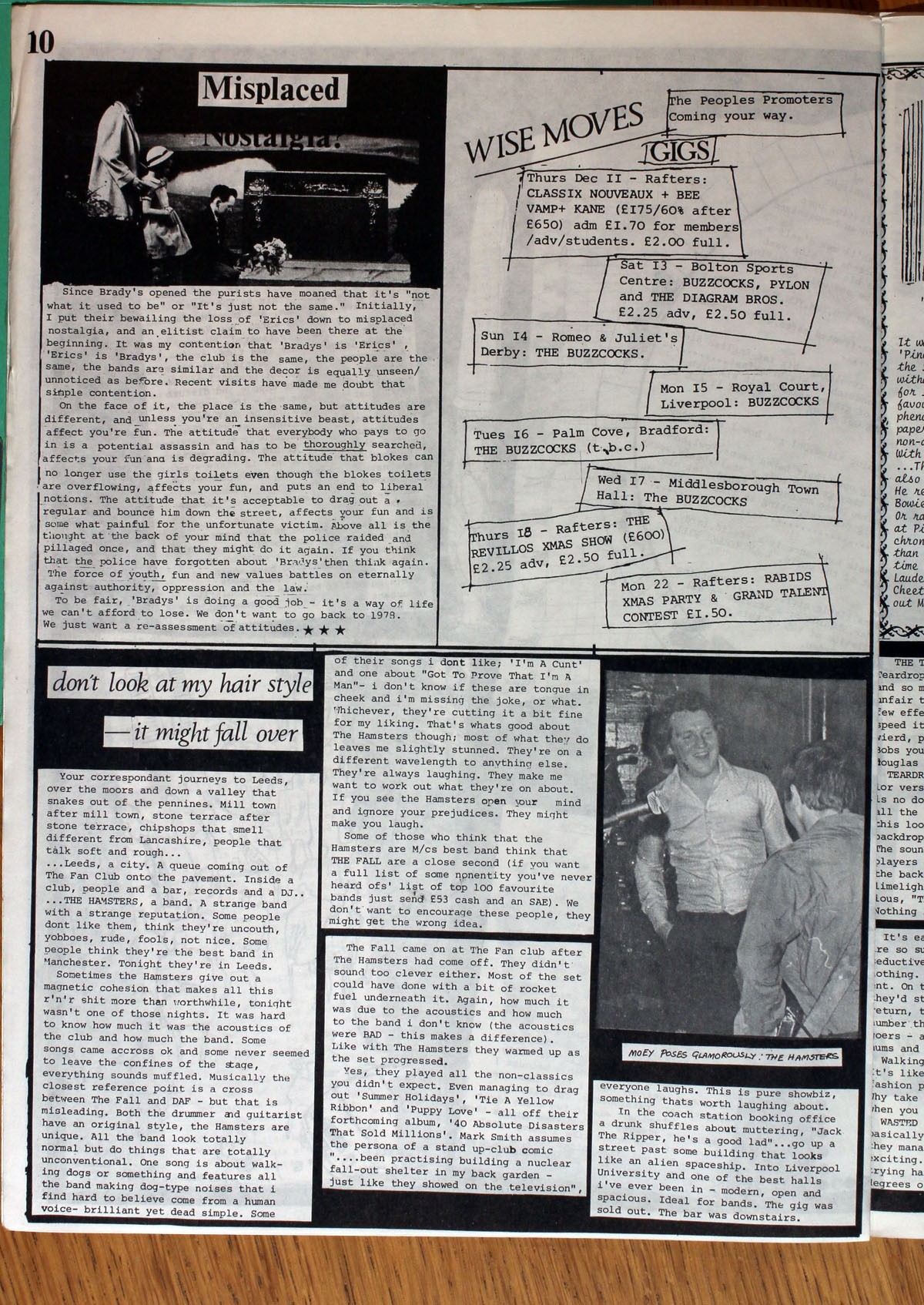 "Your correspendent" claims the Hamsters are "the best band in Manchester. Here they're at the Fan Club (or F-Club) run by John Keenan, the man also responsible for the Futurama Festival.